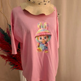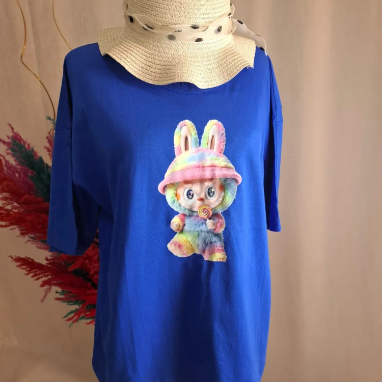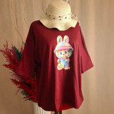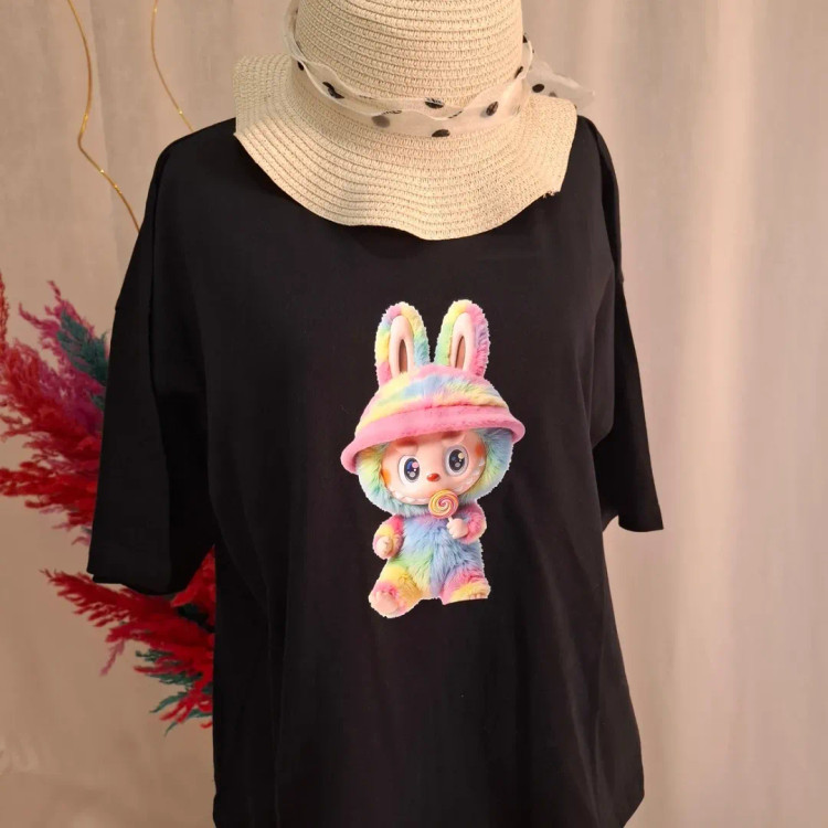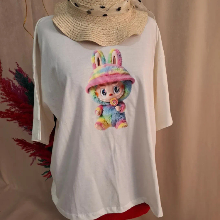 تیشرت باکسی دخترانه نخ پنبه لبوبو