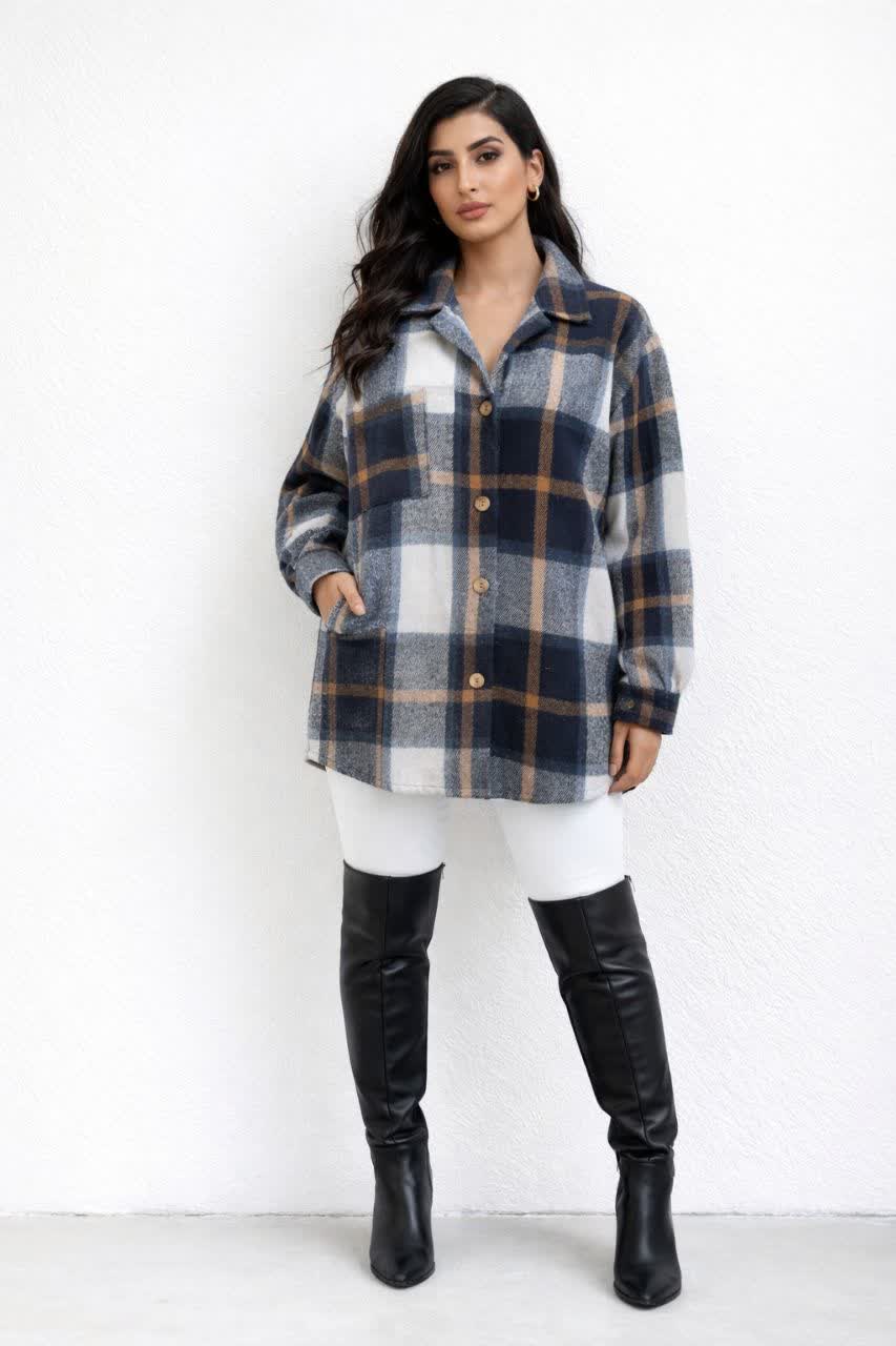ناموجودمانتو پشمی چهارخونه فری سایز